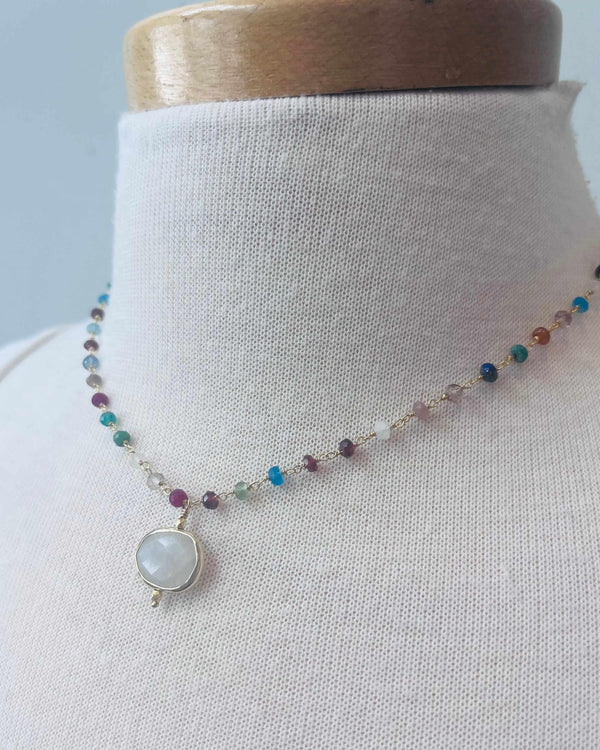Bezel Charm Rainbow Necklace