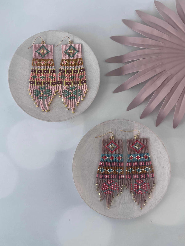 Beaded Handwoven Shisha Fringe Earrings