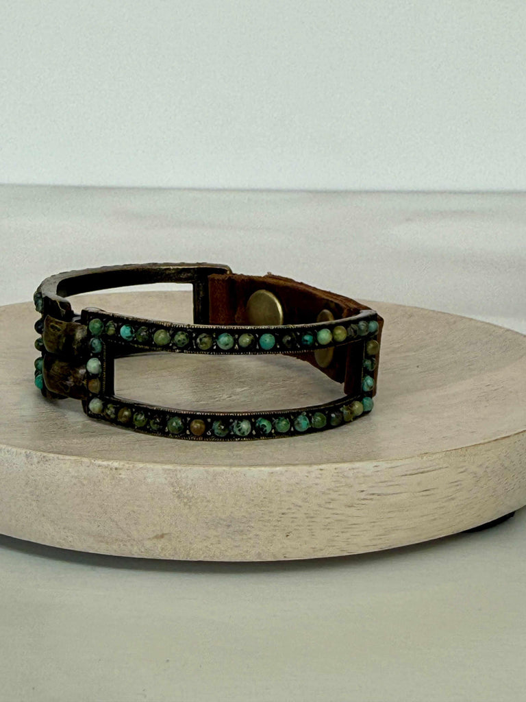 1/2" wide leather band fits 6 1/4" - 7 3/4" wrist. The snap closure has three options for a perfect fit.