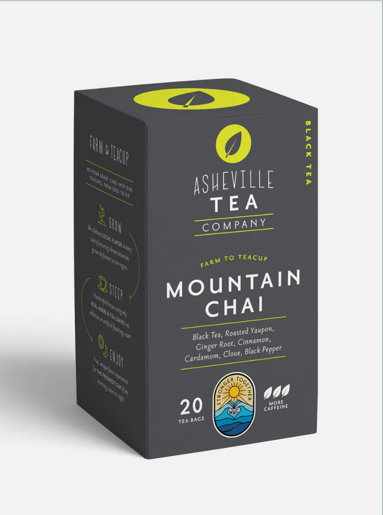 Tea is grown by small family farms using sustainable practices across the southeast. The tea is flavored and sustainably packaged in Asheville, NC.