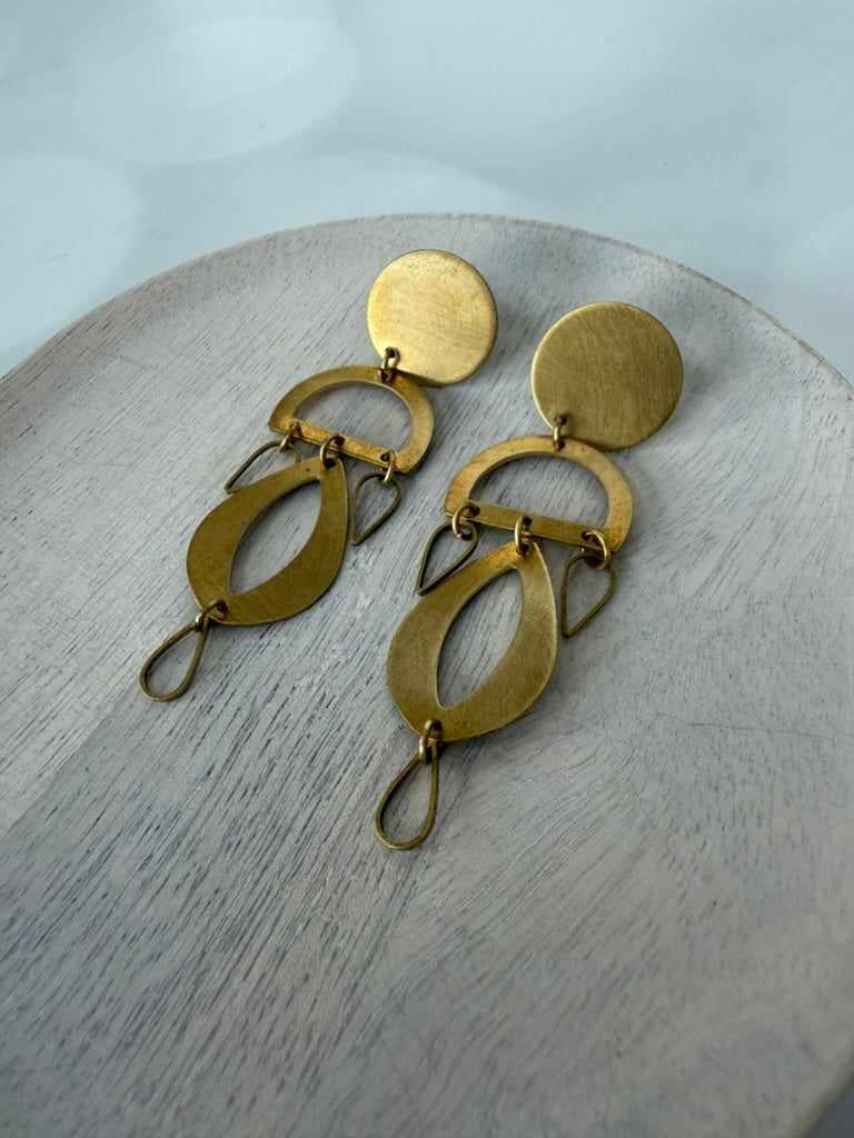 Brass Dangle Chandelier Earrings $45.00 Default Title These super fun dangle earrings add a little pizzazz to any look! Made from 100% brass with sterling silver posts. Roughly 2.5 inches from top to bottom. Earring are handmade in Portland, OR. Add to Cart Notify Me When Available