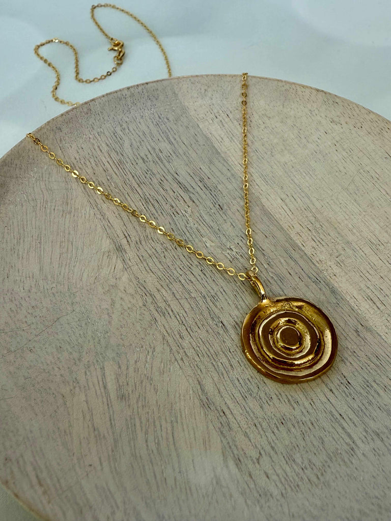 Cycles Pendant Necklace $62.00 Default Title This necklace is to support you in the ebb and flow of seasonal and energetic cycles. Carved and cast in bronze Necklace is 16" in length Necklace is handmade in Nashville, TN Add to Cart Notify Me When Available