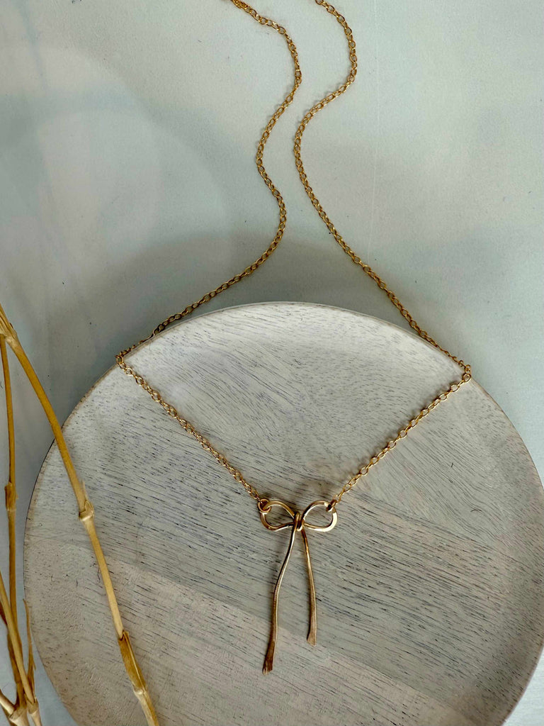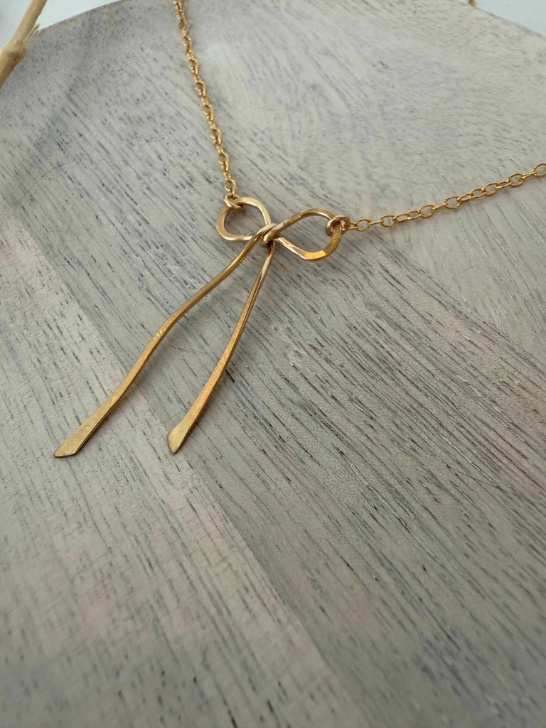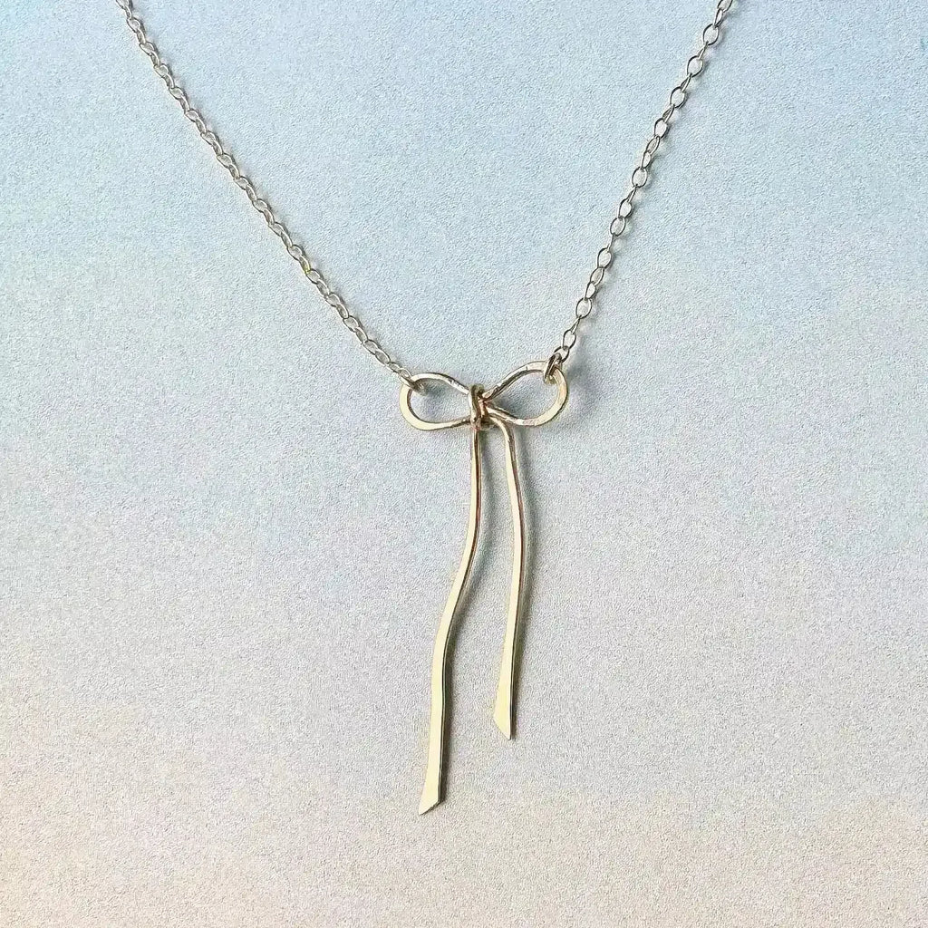 Dainty Bow Necklace $62.00 material 14k gold fill 14k gold fill sterling silver 14k gold fill sterling silver Sweet & dainty! Perfect accessory for the holiday season and beyond. 16" chain, Bow measures 1.25" Necklace handmade in Nashville, TN Add to Cart Notify Me When Available