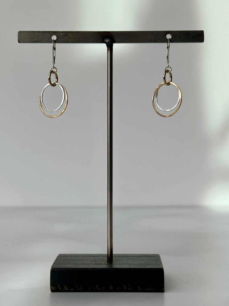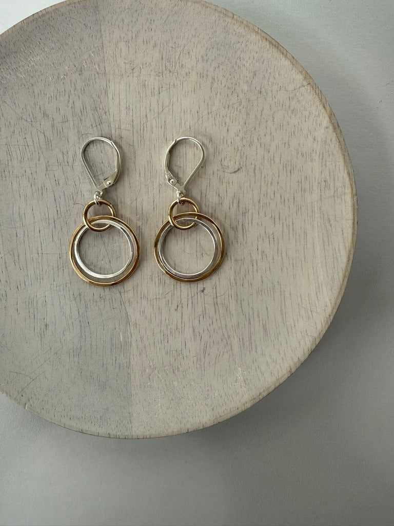 These beautifully layered earrings feature a playful combination of gold and silver circles. They are sure to be your new go-to when you need to dress things up a bit!