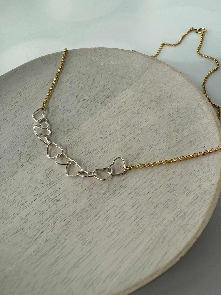 So many hearts! The Heart Garland necklace is just that - a line of little linked hearts. This mixed metal necklace brings a little sweet romance to your everyday jewelry collection!
