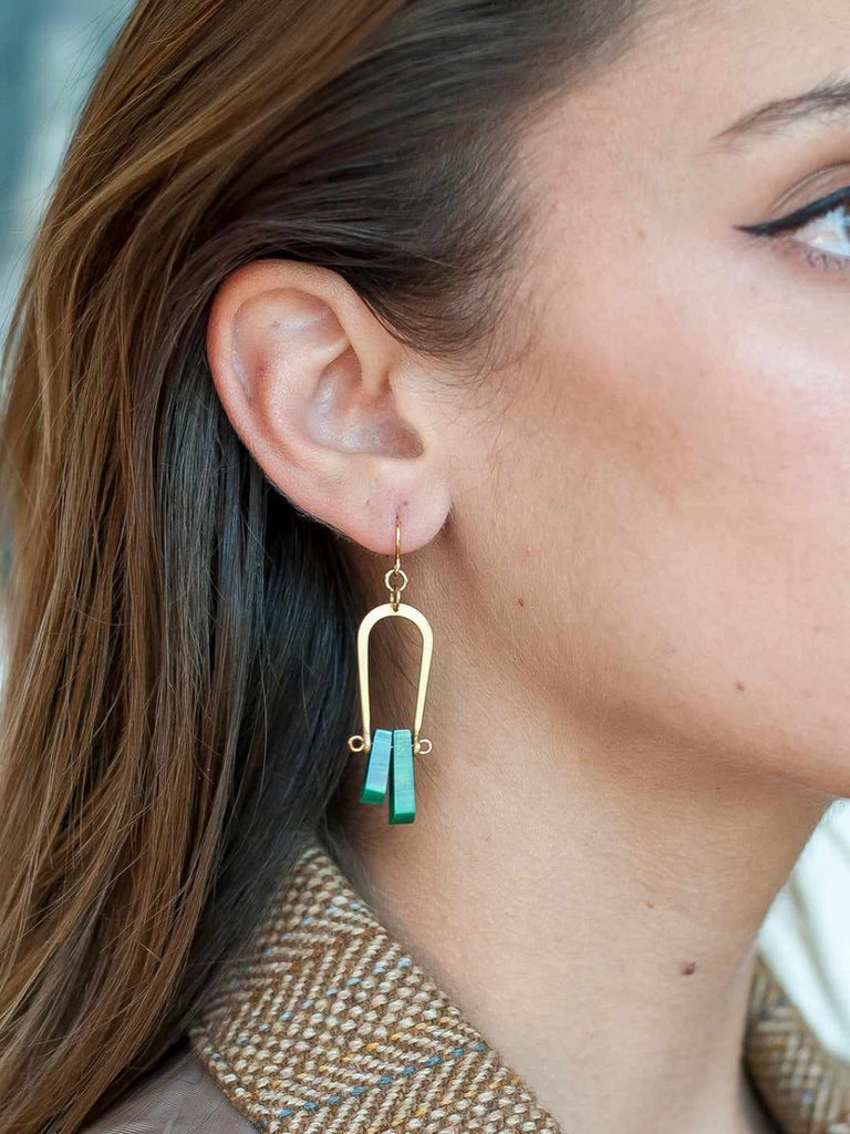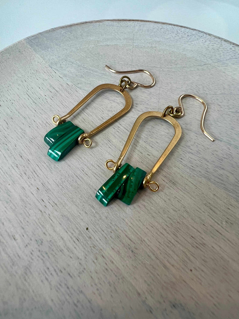 Malachite Notch Earrings $42.00 Default Title Vintage brass curved findings with gorgeous malachite beads. 1/2" x 1 3/4" long 14kt gold filled ear wires. Earrings handmade in Chicago, IL Add to Cart Notify Me When Available Customer Reviews Based on 1 review Write a review