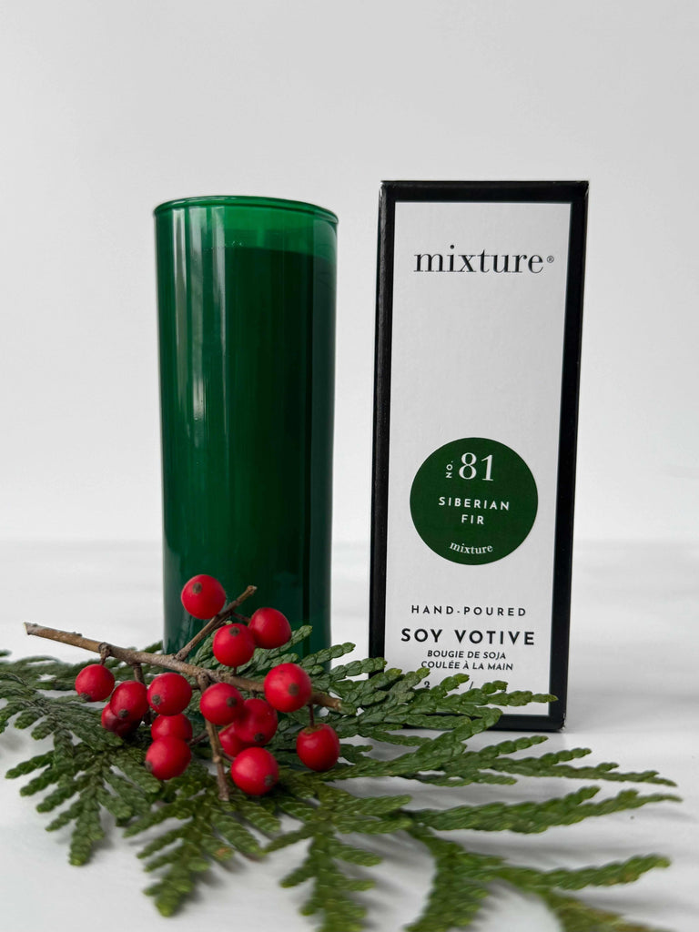 A beautiful addition to your holiday décor and a fantastic gift at an approachable price! Siberian Fir scented candle in a tall festive green glass votive.