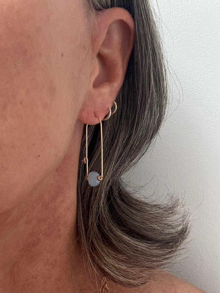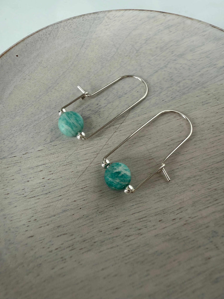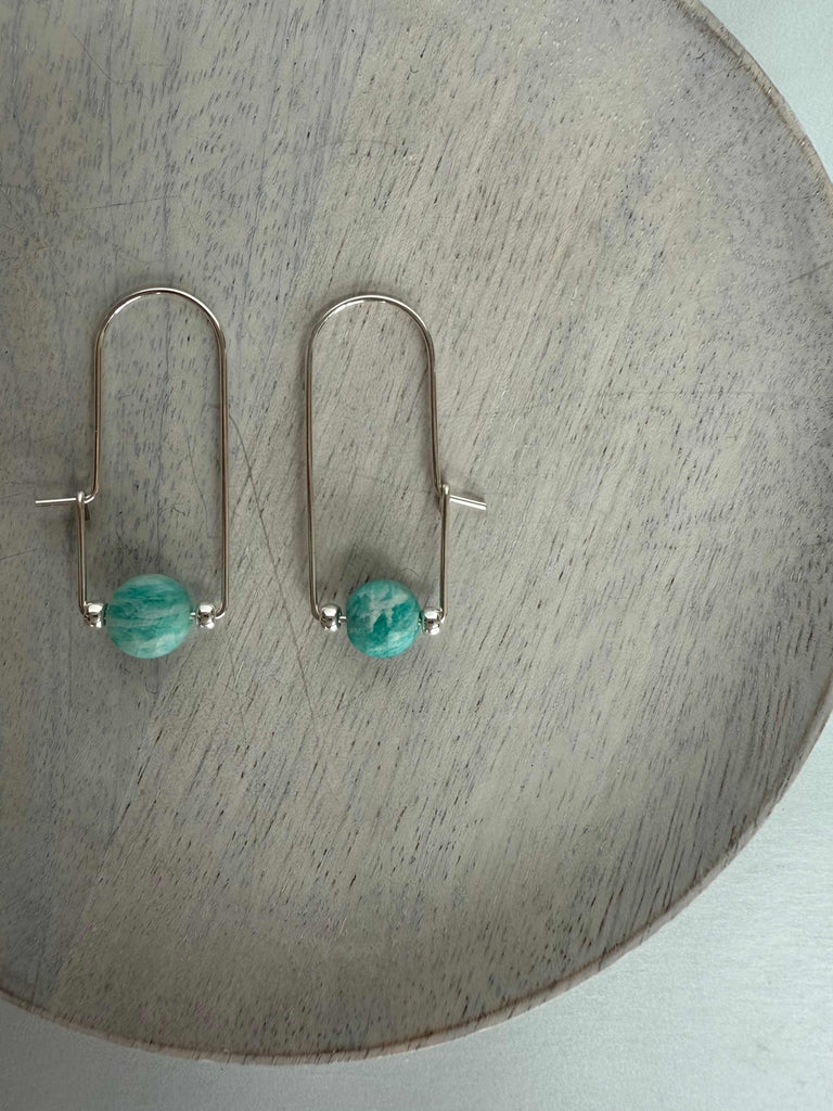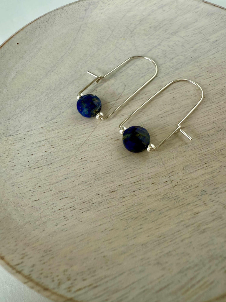 Silver Modern Arc Earrings $32.00 gemstone lapis lazuli amazonite lapis lazuli amazonite lapis lazuli Simple, clean drop earrings that are also unique and interesting!. Approximately 1.5" in length. Sterling Silver, gold version here> Earrings are handmade in Montana. Add to Cart Notify Me When Available