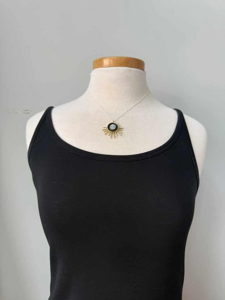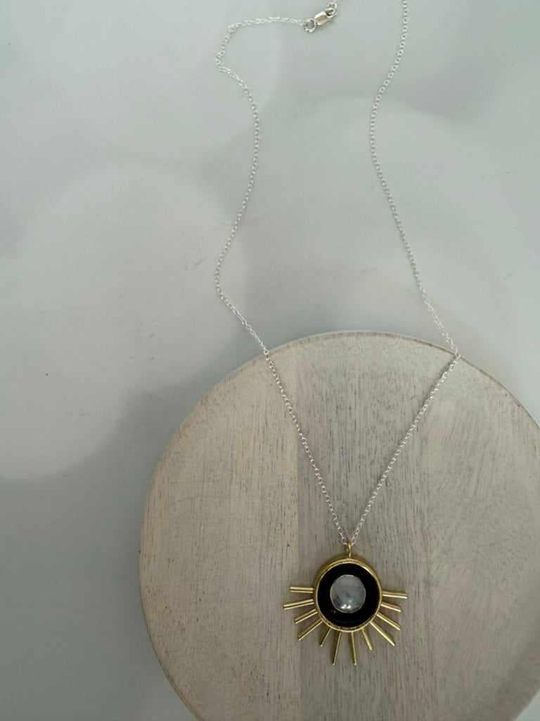 Sunbeam Rainbow Moonstone Necklace $65.00 Default Title Sunbeams and Moonstone?!? Yes, please! Two of our favorites combine to make this beauty. 100% genuine brass sunbeam pendant with a Rainbow Moonstone. Pendant measures 1.5" x 1.25" 18" sterling silver chain. Necklace is handmade in Portland, OR. Add to Cart Notify Me When Available