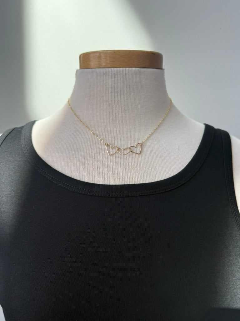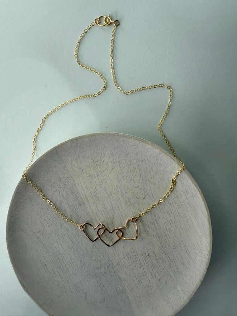 This hand-forged sterling silver necklace features 3 interlocking hearts on a delicate sterling chain. The hearts spin freely, symbolizing unending love and connection. A perfect gift for a loved one, or a beautiful addition to your jewelry collection.